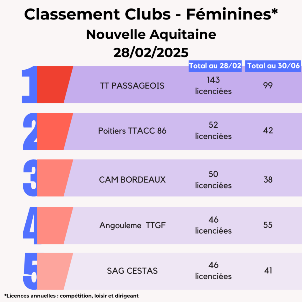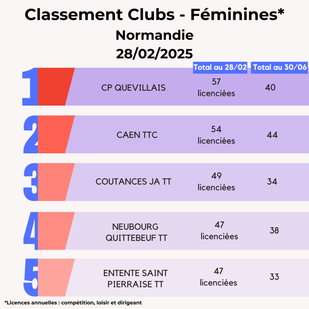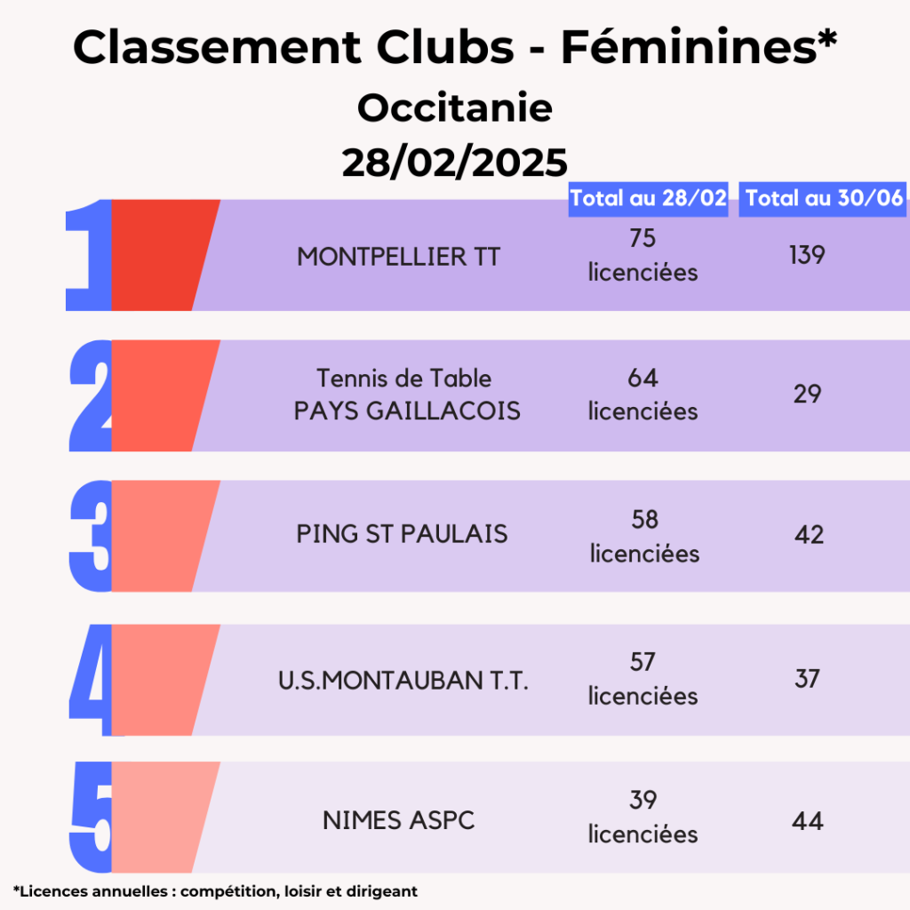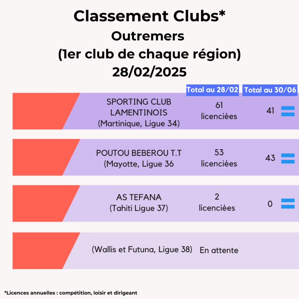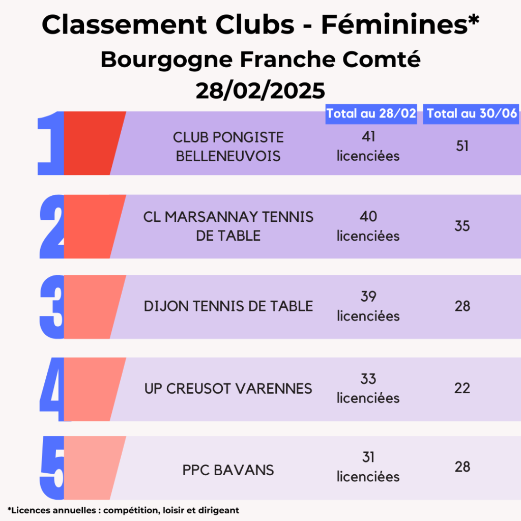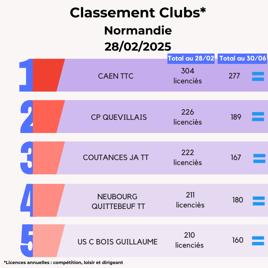 Lors de la saison 2024-2025, la FFTT peut compter sur l’engagement de ses 3 095 clubs affiliés et leurs bénévoles qui œuvrent au quotidien pour faire vivre le ping partout en France et poursuivre son développement. La FFTT souligne aujourd’hui leur dynamique et les félicite par ce Top 20 des clubs par licenciés au 28 février avec leur progression par rapport à juin 2024. Découvrez également ci-dessous les tops 5 globaux des clubs par région mais aussi, en cette année du ping féminin, les tops 5 des associations avec le plus de pratiquantes féminines !