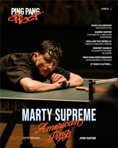 Le sommaire de ce premier numéro affirme d’emblée cette volonté de raconter le ping autrement. En tête d’affiche, un dossier central consacré à Marty Supreme, présenté comme « le tout premier très grand film entièrement dédié au ping-pong, avec un pongiste au cœur du récit ». Autour de ce marqueur culturel fort, le magazine déploie un large éventail de récits : « On a aussi des analyses surprenantes, et autour de ça, comme un éventail, des entretiens avec des artistes, designers, reporters de guerre, créateurs de mode… »