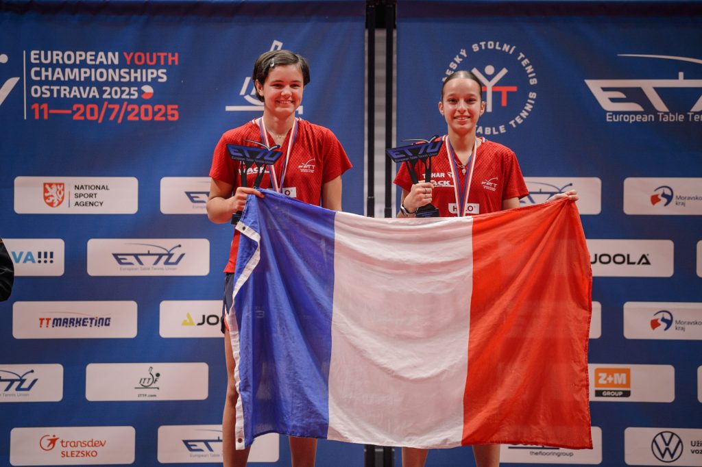 Lorsque j’ai appris que j’avais été sélectionnée aux CEJ à la fin du WTT en Suède, j’étais tellement heureuse, c’était un de mes objectifs de l’année. Mon expérience aux CEJ a été une aventure inoubliable, j’ai été tellement fière de représenter la France. C’est un honneur que je n’oublierai jamais. Ça m’a aussi permis de repousser mes limites physiques et mentales. Au total j’ai fait 29 matchs sur les 4 tables en allant jusqu’au bout : 3 finales et 1 demi-finale. Quand j’ai obtenu avec Noah (Tessier) le premier titre, j’étais tellement heureuse ! Un titre européen, on ne s’y attendait pas du tout, c’était la première fois qu’on jouait ensemble. La délégation française était derrière nous tout le long du match, après la victoire j’ai levé les mains au ciel et j’entendais le public chanter « Champions d’Europe ». C’était incroyable !