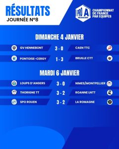 Malgré la présence de Jianan Yuan (n°3), joueuse du mois de novembre et vainqueure de Prithika Pavade (n°5), Poitiers n’est pas parvenu à prendre le dessus sur les Dionysiennes, venues avec une équipe particulièrement solide. Toujours invaincue, la défenseuse néerlandaise a dominé ses adversaires du soir, Wu Jiaduo (n°17) puis Jianan Yuan (n°3). Agathe Avezou (n°65) a ensuite complété le score en s’imposant face à Claire Picard (n°66).