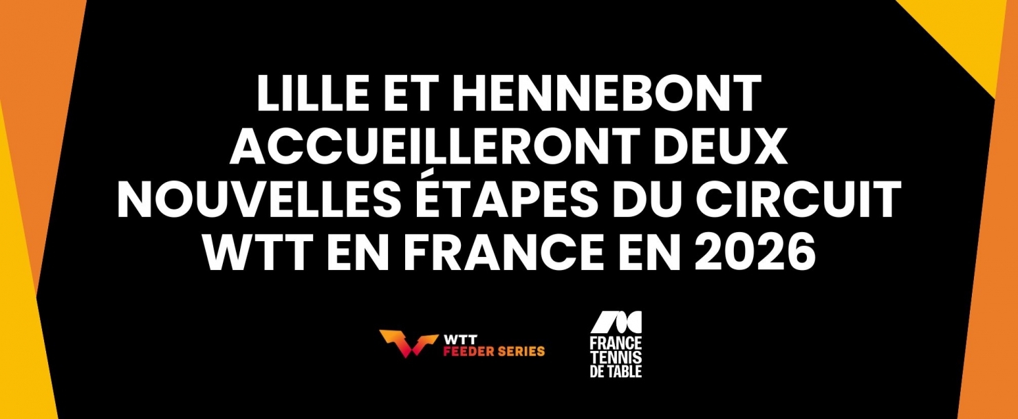 Après le WTT Champions de Montpellier organisé pour trois saisons depuis 2024, la FFTT est heureuse d’annoncer l’arrivée de deux nouvelles étapes du circuit international sur le territoire français en 2026.